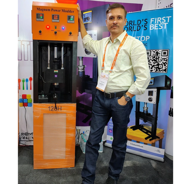 ‘Magnum Power Moulder’ is an innovative and patented machine, that occupies little space, consumes less power and has an automatic granule feeder to make the plastic parts manufacturing process quick, easy and economical. This machine breaks the entry barrier of high setup cost, high power requirement, skilled operator and high space requirement, and offers an affordable and simple solution to start the Plastic Industry.